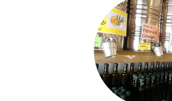 Nous proposons un large choix de produits en vrac (fruits et légumes en frais et secs, chocolats, mais aussi un vaste choix d’huile végétales et biologiques (olive, figue de barbarie, jojoba, ricin…), en passant par les ingrédients et actifs cosmétiques bio et naturels (produits capillaires, hennés, poudres indiennes… jusqu’aux produits pour l’hygiène et l’entretien de la maison (paillettes savon de Marseille, lessive liquide…).